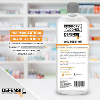 A pharmaceutical grade alcohol, Defensil Isopropyl Alcohol passed the strictest quality standards of the Philippine Food and Drug Administration (FDA).